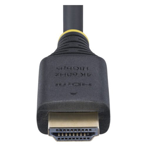 This high-speed HDMI cable features a flexible TPE outer jacket that withstands 2000 bend cycles at +/- 60 degrees and can be easily routed around corners and table edges. Robust strain reliefs allow for convenient cable positioning. The durable, gold-plated connectors are designed for a lifespan of more than 10,000 connections.