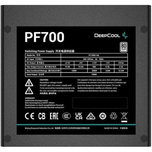 DeepCool PF700, 700W, 220-240V, 50Hz, 100W, 696W, 100W