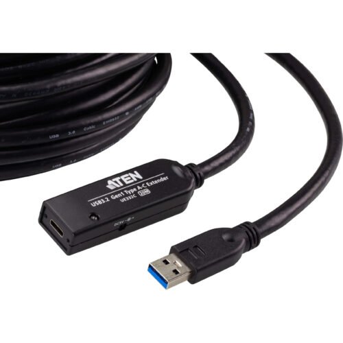 ATEN UE332C. Cable length: 20 m. Connector 1: USB A, Connector 2: USB A, USB version: USB 3.2 Gen 1 (3.1 Gen 1), Max. data transfer rate: 5 Gbit/s, Product color: Black