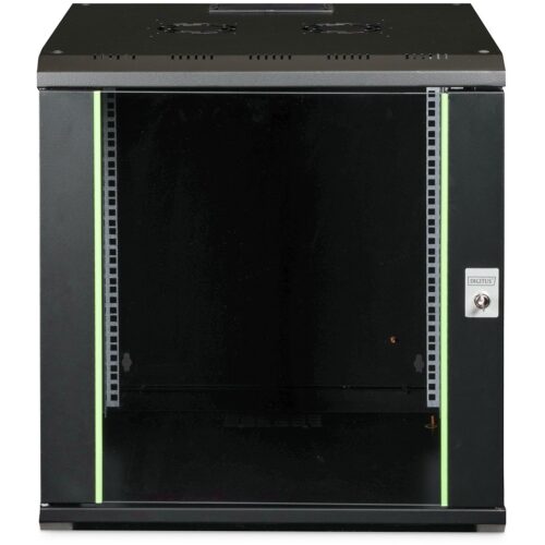 Digitus Unique Series Wall Mount Enclosure – 600×600 mm (WxD), Wall Mounted Rack, 12U, 100 kg, Lockable, Storage Rails, Black