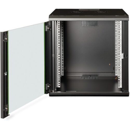 Digitus Unique Series Wall Mount Enclosure – 600×600 mm (WxD). Type: Wall-mounted rack, Rack capacity: 12U, Maximum weight capacity: 100 kg, Lockable lock, Shelf rails, International Protection Rating (IP Code): IP20, Product color: Black