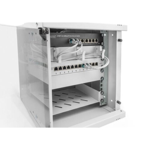 Digitus SOHO Pro Wall Mount Rack – 254 mm (10″) – 315 x 300 mm (W x D). Type: Wall-mounted rack, Rack capacity: 6U, Maximum weight capacity: 60 kg, Locking lock, Improved cable management, Storage rails, International protection rating (IP code): IP20. Weight: 4.58 kg. Product color: Gray