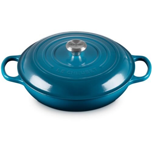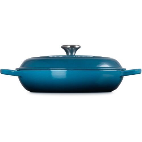 Our cast iron products, crafted in our French foundry, enjoy a legendary reputation in the kitchen. The Gourmet Professional saucepan is no exception. Its large, shallow shape with low sides is perfect for searing meat and vegetables, preparing stews, roasting, and baking. The pan enhances caramelization, resulting in dishes that will leave you wanting more.