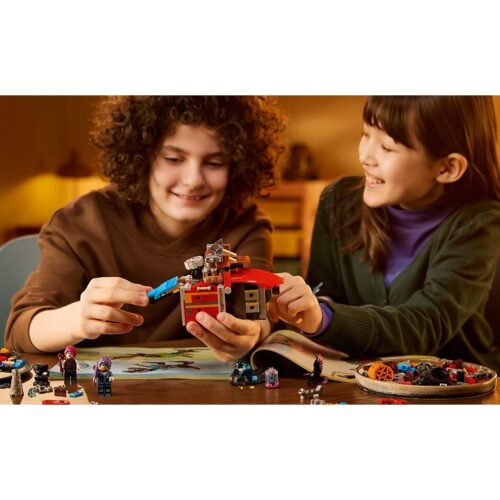 Zoey and Cooper, their two dark doppelgangers Doey and Dooper, and the Sneak figure bring this creative playset to life. Zoey holds a bow, and Cooper wields a hammer. Both heroes can be placed in a car or on the back of the dinosaur. The included building instructions, presented in a picture story, let children play imaginatively with this creative toy and act out thrilling action adventures.