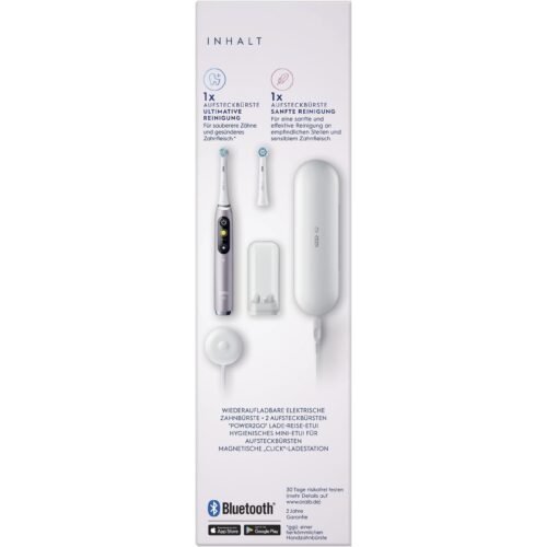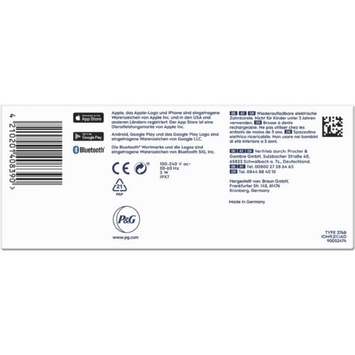 | Feature | 3D effect, Ad included, Adjustable speed, Battery powered, Bluetooth, Brush head holder, Charger, Charging case, Charging indicator, Charging station, Control of gum pressure, Indicator light, Integrated timer, LED indicators, Operating manual, Pressure sensor, Rechargeable |