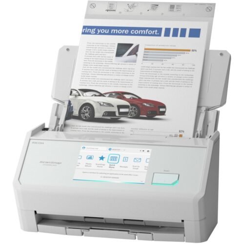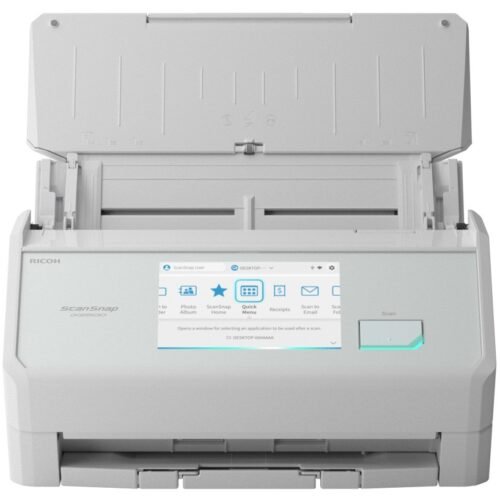 Ricoh ScanSnap IX2500. Maximum scan size: 297 x 432 mm, Optical scan resolution: 600 x 600 DPI, ADF scan speed (black and white, A4): 45 pages per minute. Scanner type: ADF scanner, Product color: White, Screen diagonal: 12.7 cm (5″). Sensor type: Dual CIS, Light source: RGB LED, Scanner file formats: JPEG, PDF. Automatic document feeder (ADF) capacity: 100 sheets. Maximum ISO A-series paper size: A3. Supported scan media types: Business card, Photo paper, Plain paper, Post Card (JPN). ISO A-series formats (A0…A9): A3, A4, A5, A6.