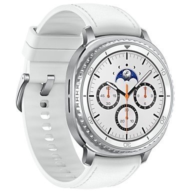 Samsung Galaxy Watch 8 Classic. Screen size: 3.3 cm (1.3″), screen technology: AMOLED, display resolution: 438 x 438 pixels, touchscreen. RAM capacity: 2000 MB, flash storage: 64 GB. Wi-Fi. GPS. Battery capacity: 445 mAh. Weight: 63.5 g. Strap color: white. Installed operating system: Wear OS.