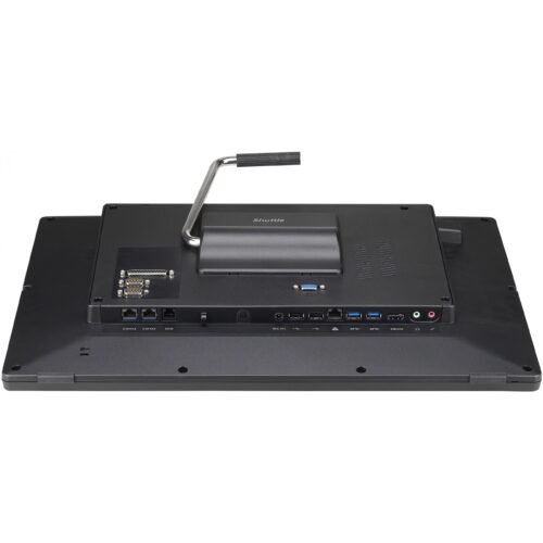 The Shuttle XPC all-in-one P92U is a 19.5-inch all-in-one PC with a capacitive touchscreen. An Intel “Comet Lake-U” ultra-low-voltage processor delivers high performance with low power consumption. Thanks to completely passive cooling, the system is virtually silent, maintenance-free, and suitable for 24/7 continuous operation. The placement of most ports on the bottom of the chassis and the IP54-rated dust and water resistance of the front panel also make it ideal for vertical markets.